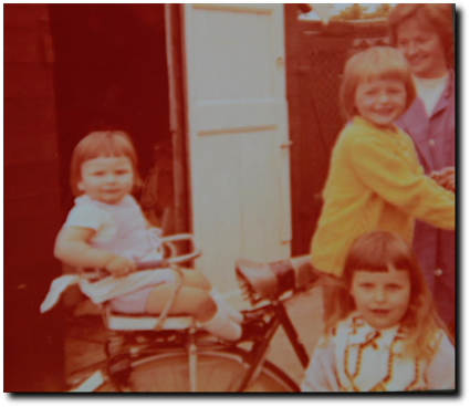 Matty Bergsma ,d.v. Gerard Bergsma en Gees Kikkert . met Fenny ,en René achter op de fiets