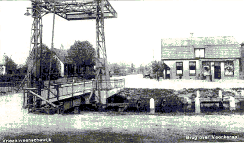 Brug over het Veenkanaal aan de Paterswal , met rechts, turfstrooisel fabriek Terwindt Arntzveen